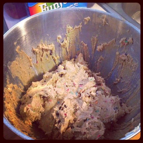 A coworker of mine is turning 29 tomorrow and she is always asking me to bake something. I figured, what better present than to bake her something special just for her birthday?!? So, I made her some Birthday Cake Cookies. Yum-o!